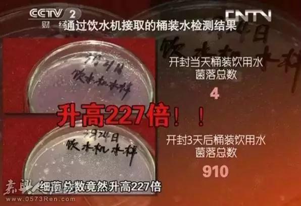 央視《是真的嗎?》做了一期關(guān)于桶裝水開(kāi)封三天的試驗(yàn),桶裝水,從開(kāi)封那一刻開(kāi)始,細(xì)菌就開(kāi)始滋生,知道3天后,細(xì)菌超過(guò)227倍,成了典型的的危險(xiǎn)水,是真的嗎?